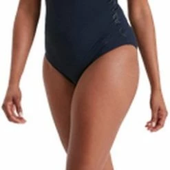 Speedo W BEACH Summer Stripe Long Sleeve Wrap Back Swimsuit – Navy/Orange/Yellow Size : 32