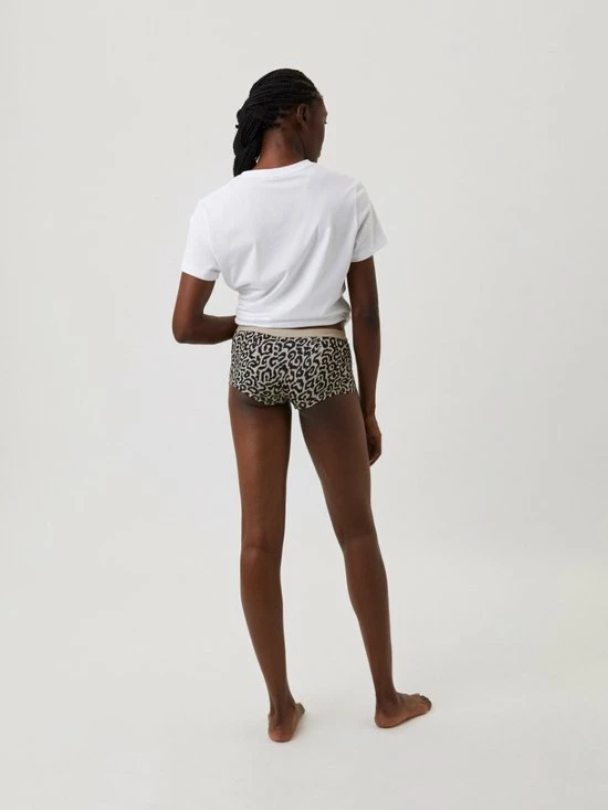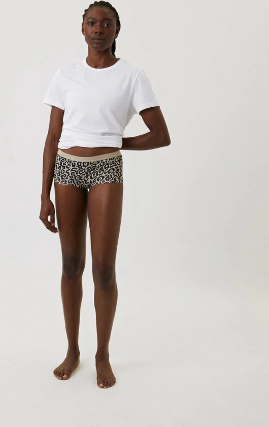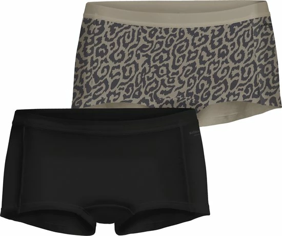 95% Katoen, 5% Elastaan, kwalitatief mooie en goede elastische katoenen dames boxershorts van Bjorn Borg in een panter en zwarte kleur
