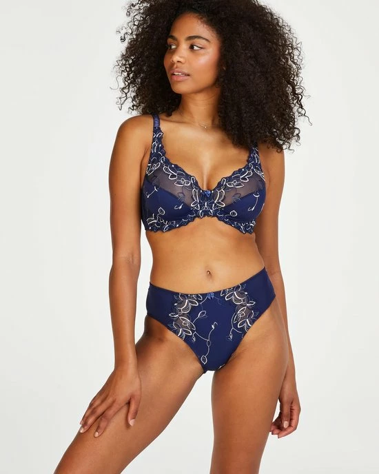 Deze hoge slip is uitgevoerd in een soepel vallend materiaal wat zorgt voor een fijne pasvorm. De slip is aan de voorzijde versierd met bloemenborduursel en een strikje.