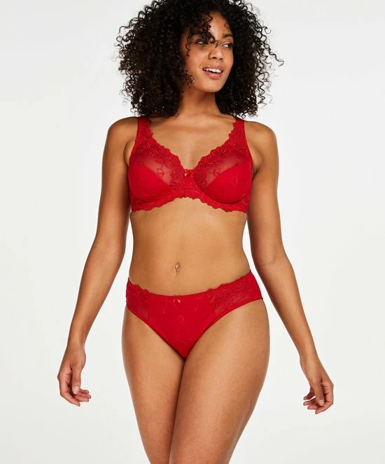 Deze niet-voorgevormde beugel bh is uitgevoerd in een ondoorzichtige stof en aan de bovenzijde afgewerkt met semi-transparant kant. De cups zijn versierd met een elegant bloemenpatroon. Maak je set compleet met de bijpassende Diva slip.
