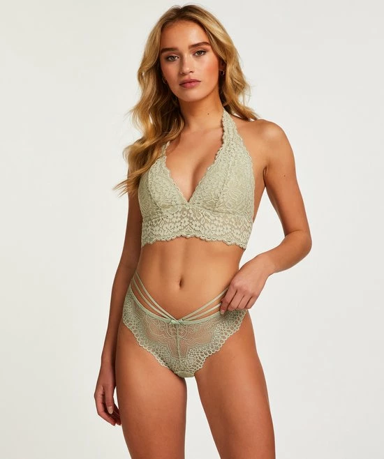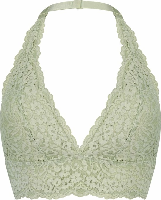 Voel je comfortabel en sexy in deze halter bralette! De bralette bestaat bijna volledig uit kant en zit lekker doordat hij wireless is. De bralette heeft uitneembare padding. Combineer met de bijpassende slip voor een compleet set! Het kant is gemaakt van 68,1% gerecycled nylon. Lees meer over onze duurzame missie door hier te klikken.
