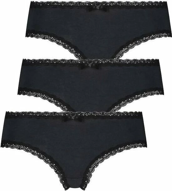 Deze brazilian short staat jou prachtig! Hij is voornamelijk gemaakt van katoen en heeft een leuk kanten randje en een strikje aan de voorkant. Verpakt als 3-pack en makkelijk te combineren met een bh in dezelfde kleur!
