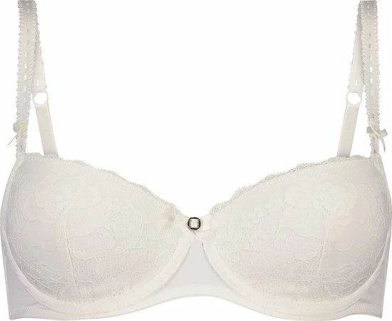 De cups van deze voorgevormde beugel bh zijn bedekt met prachtig kant. De bh is afgewerkt met subtiele details zoals het strikje tussen de cups en op de schouderbandjes. Deze bh is te combineren met de bijpassende slip.