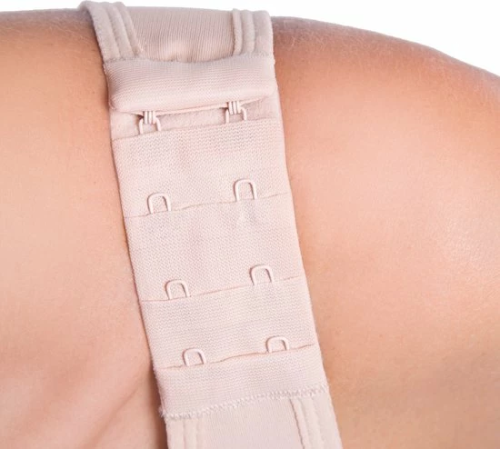 - Aan de voorkant van de compressiebeha zit een haak- en oogsluiting. Daardoor hoeft u de beha niet op uw rug los te maken en voorkomt u onnodige en pijnlijke bewegingen