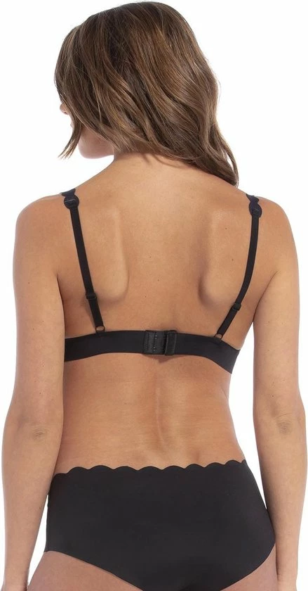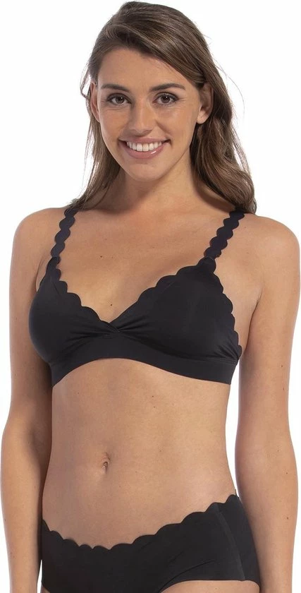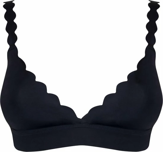 De Scallop Bralette is gemaakt van super zacht en glad gerecycled materiaal. De bralette heeft scallop randen en triangel vormige cups met uitneembare pads. De gladde band onder de buste geeft support aan de borsten. De verstelbare schouderbandjes en haak- en oogsluiting zorgen er voor dat de bralette perfect aansluit op elk lichaam.