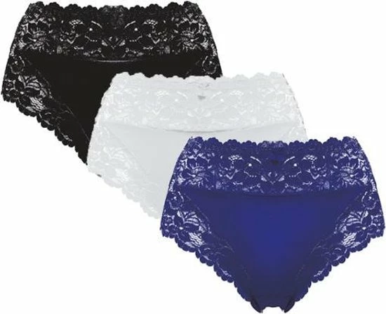 3-Pack elastische tailleslips van Microfiber (95% Polyamide en 5% Elastaan) van J&C Underwear. De randen zijn voorzien van kant wat zorgt voor een chique uitstraling. De slip is afgewerkt met een katoenen kruisje.