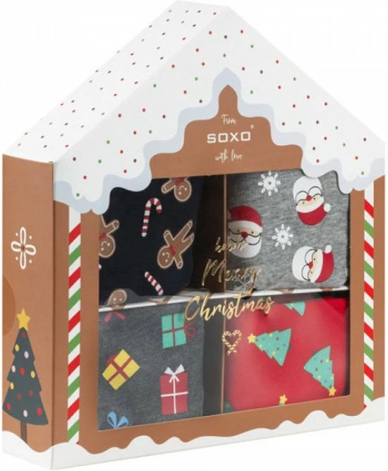 Set van 4 dames slips in een mooie kerst giftbox alvast voor je ingepakt. Het geschenkdoosje bestaat uit 4 dames slips in de kleuren marineblauw, antraciet, grijs en rood met verschillende prints erop zoals de kerstman, cadeautjes, kerstbomen en gingerbread pop. De slips zijn gemaakt van 95% katoen, hierdoor hebben deze dames slips een prettig draagcomfort. Damesondergoed van zacht katoen draagt prettig op de huid, is soepel en schuurt niet. Het neemt goed vocht op en blijft daardoor langer fris. De slips zijn zeer nuttig voor je persoonlijke hygiëne en gezondheid. Deze slips zijn hierdoor ideaal voor dagelijks gebruik. Geef dit speciale kerstcadeautje met damesondergoed aan een geliefde of koop het gewoon voor jezelf. Dit kerstcadeau is verkrijgbaar in de maten S, M en L.