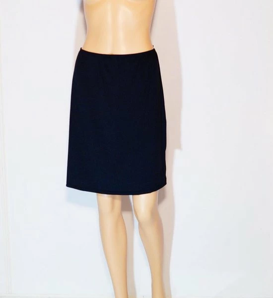 Korte dames onderrok (jupon) met zijsplitjes van het merk J%C Underwear, gemaakt van 95% Polyamide en 5% Elastan. De jupon heeft een lengte van 50 cm, dit is tot boven de knie. De taille is omgestikt. De onderrok is anti-statisch, dus plakt niet aan de huid.