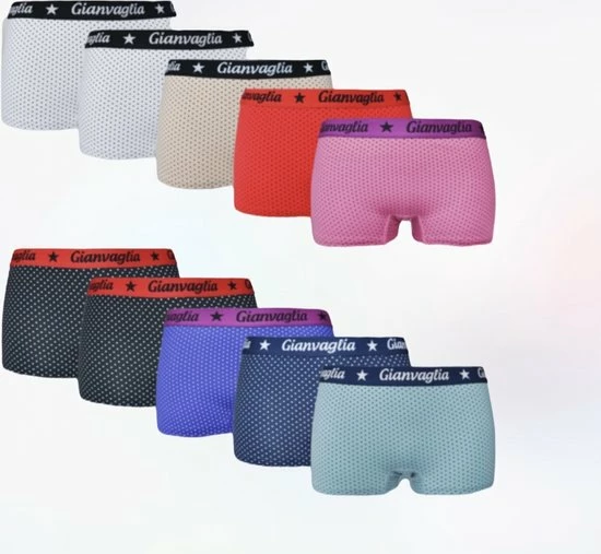 Hoge katoenen dames boxershorts 10 pack met stippenprinten.