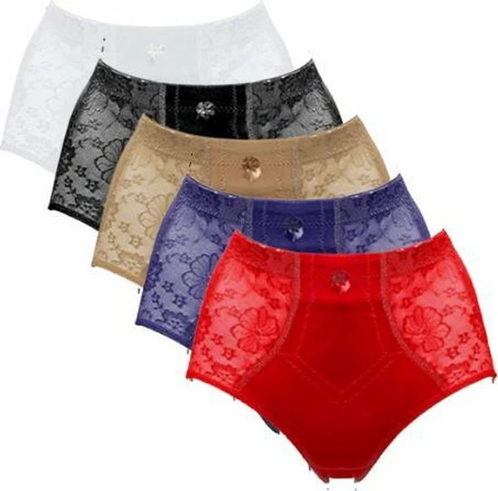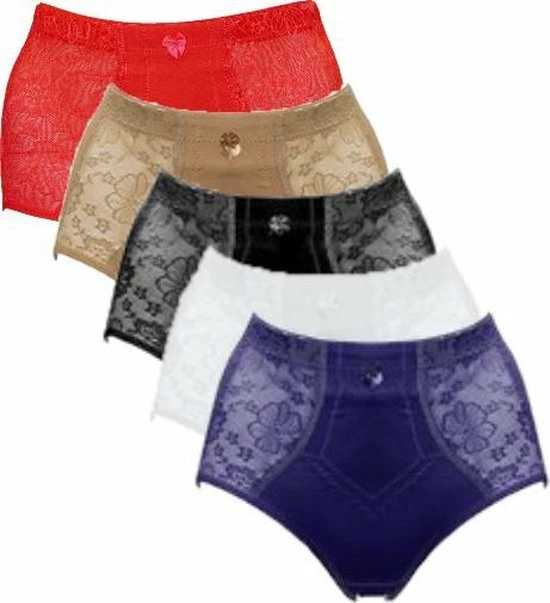 5 -Pack elastische dames tailleslips met licht corrigerend voorstuk en kanten zijstukken van J&C Underwear, gemaakt van 95% Katoen en 5% Elastaan.