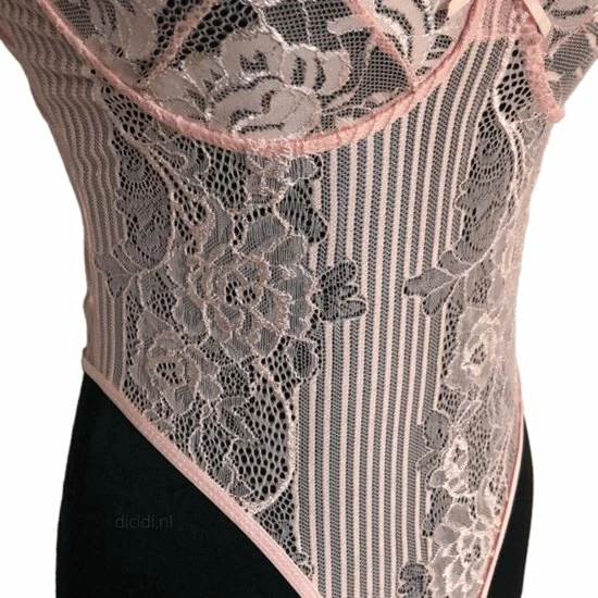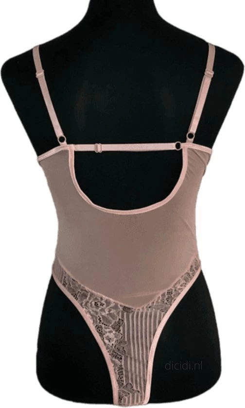 De bodysuit is geheel doorschijnend maar kan eventueel ook met een BH of pads eronder worden gedragen.