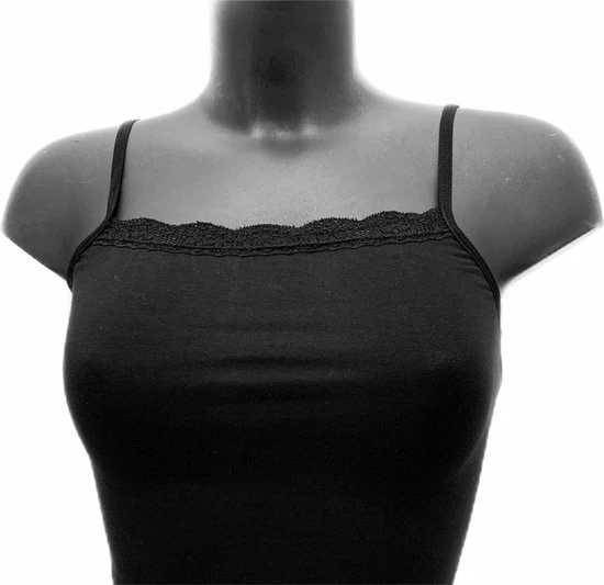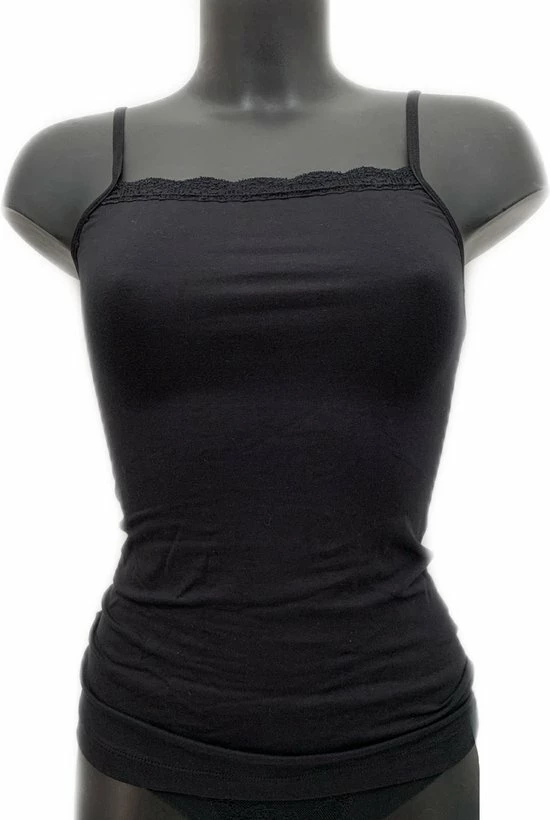 Lydia spaghetti top met kant is gemaakt van 90% Cotton made in Egypt en 10% lycra.