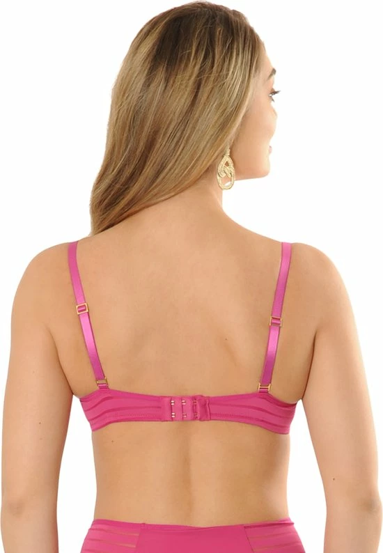 De Rosie Voorgevormde BH Fuchsia van SAPPH heeft 2 roze bandjes boven de cup, wat deze bh speels en sexy maakt. Door de sterke beugel in de bh zorgt het voor goede ondersteuning zonder dat het vervelend is voor je lichaam. De zijkanten van de Rosie Voorgevormde BH Fuchsia heeft een leuk doorzichtig gestreept patroon en door het zachte materiaal zit de bh erg comfortabel. Fan van de fabulous cup? Dan zal de Rosie jou zeker bevallen! Naast deze prachtige fashion kleur hebben we de Iconic Basic serie van SAPPH ook in basis kleuren en andere modellen. Maak je Rosie BH Fuchsia compleet met een broekje uit de Iconic Basic serie van SAPPH. Bekijk hier de gehele Iconic Basic serie van SAPPH , zowel de fashion als de basis kleuren. De Iconic Basic serie in de kleur fuchsia is onderdeel van de nieuwe La Dolce Vita collectie van SAPPH. Deze prachtige zomerse collectie is geïnspireerd op de Italiaanse heritage van de Romeinen. Niet alleen de prints maar ook de kleuren zijn volledig geïnspireerd op Italie en ook in deze collectie zijn er een aantal bestsellers terug te vinden. In de Dolce Vita, the Italian dream collectie komt stoer en krachtig terug in combinatie met sexy en delicaat kant. Are you ready to live the Italian dream? Materiaal: 47% polyester, 44% polyamide en 9%% elastaan. Ons wasadvies voor lingerie en badmode is altijd handwas. Tip: bestel voor je delicate was een heerlijke fles SOAK , hiermee kun je je was in slechts 15 minuutjes laten “soaken” en bespaar je ook nog eens veel water. SOAK is goed voor je delicate was en voor het milieu!